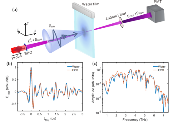 由于液体(尤其是液态水)对太赫兹波的强吸收,以液体为介质的太赫兹波产生和探测长期以来被认为是无法实现的。2017年报道了强激光激发水能够产生太赫兹波,但是其产生机制并不清晰,无法应用其逆过程对太赫兹波进行探测。