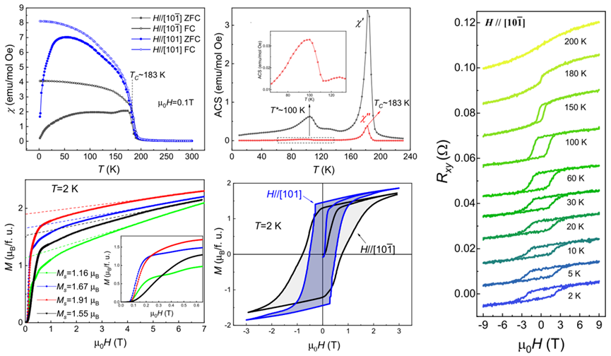 图2:FePd2Te2块体的磁性质和薄层样品的反常霍尔效应。