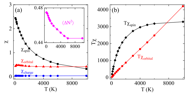 通过DFT+DMFT计算,在双层La3Ni2O7中高自旋组态具有较大的权重;通过对虚时自旋关联函数的分析,发现体系在高温处于自旋冻结相,低温下则表现为相干费米液体;自旋磁化率在高温情况下展示出 Curie-Weiss 行为,而轨道磁化率则保持 Pauli 顺磁行为。这些结果说明La3Ni2O7时一种典型的Hund金属,为RP镍基超导的机理提供了重要的理论参考。