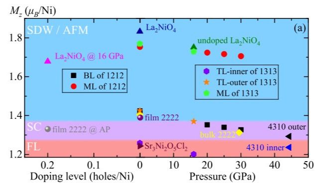 针对近年新发现的Ruddlesden-Popper(RP) 镍基非常规超导家族,304永利集团有限公司贺荣强教授、卢仲毅教授团队及其合作者,利用第一性原理密度泛函理论以及动力学平均场理论,针对RP镍基材料的超导机制,关联电子结构以及自旋涨落等进行了一系列的理论研究。核心发现:·澄清非常规超导本质·明确电子关联性来源·描述关联电子结构·总结镍基超导的规律·预言新的镍基高温超导电声耦合计算表明高压双层La3Ni2O7中的电声耦合很弱,不...